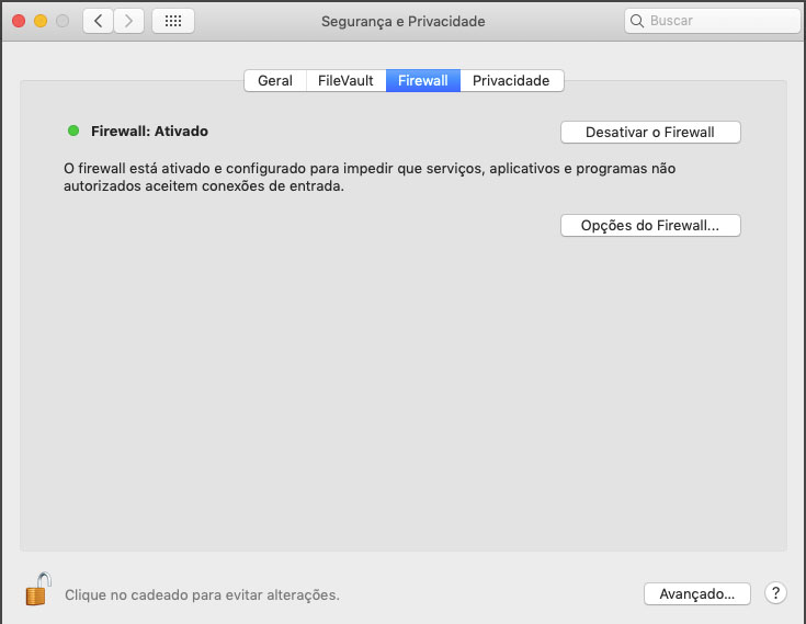 3. Firewall: Proteja as entradas de conexões do seu Mac