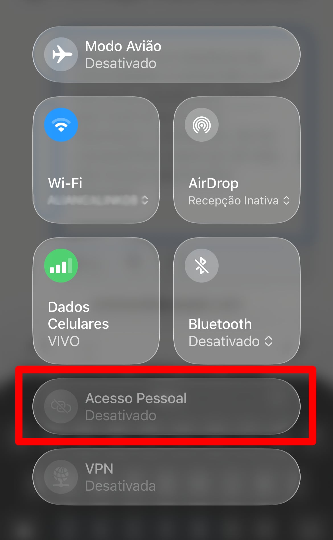 Ajustes → Celular → Acesso Pessoal