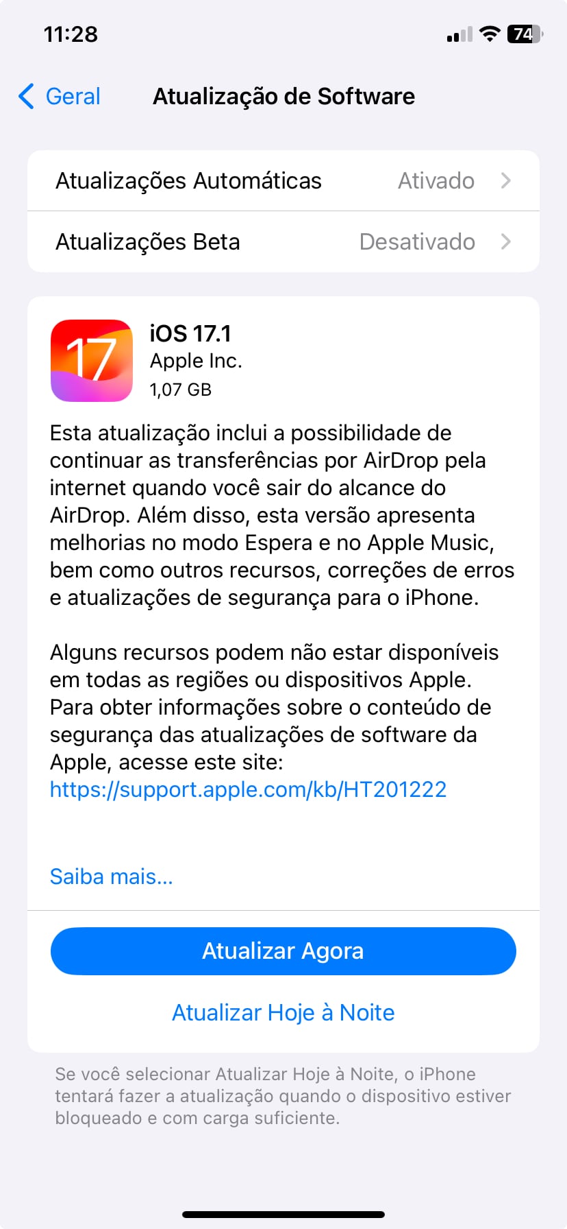 - Por fim escolha atualizar o iOS 17.1 ou o iPadOS 17.1, dependendo do seu dispositivo