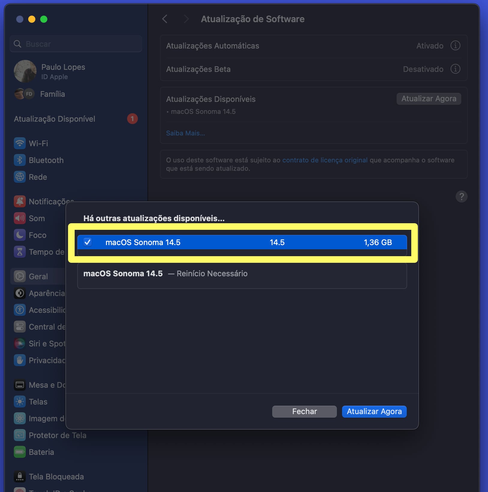 - Por fim, clique em “Atualizar Agora” para baixar e instalar a atualização do MacOS Sonoma 14.5 em seu Mac.