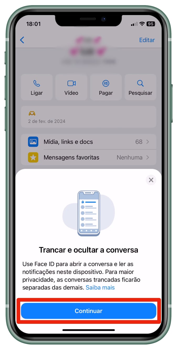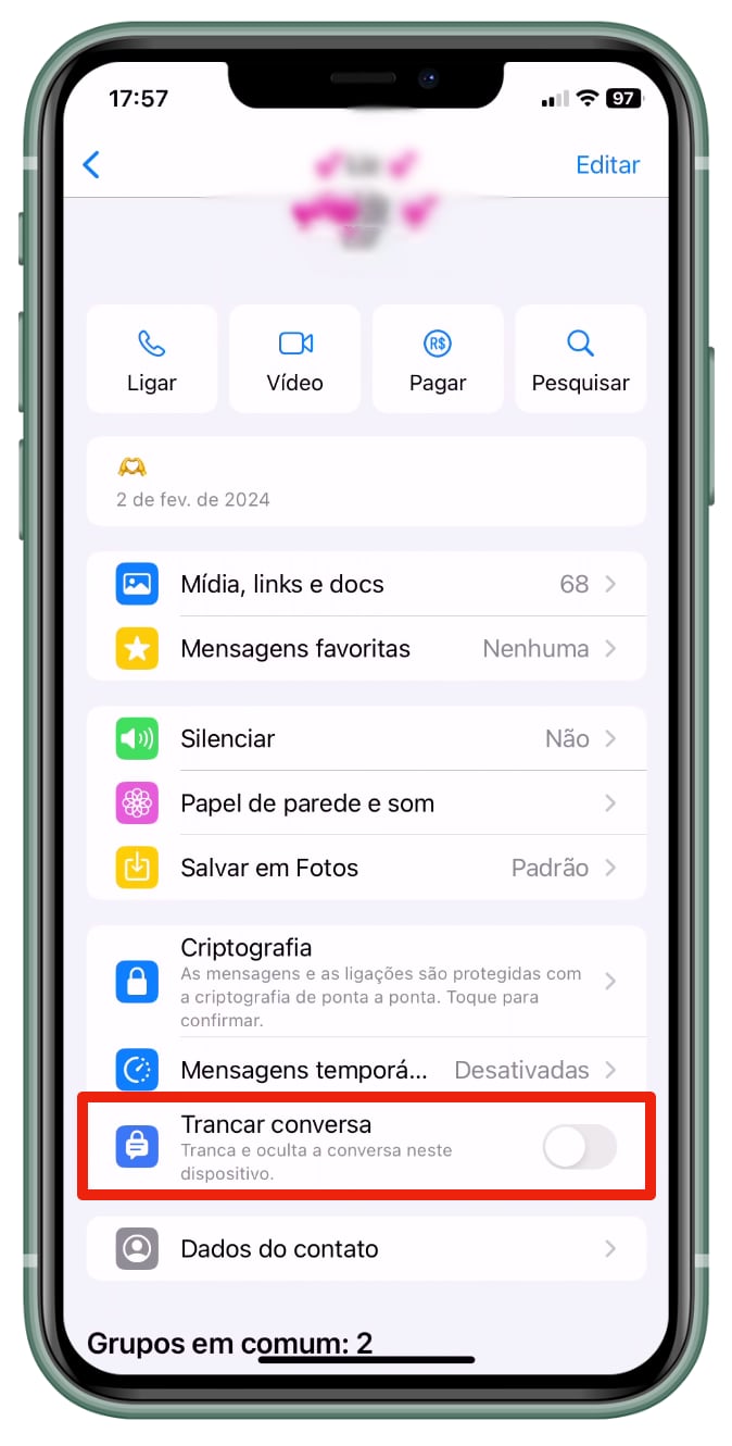 Após trancar e ocultar as conversas, você poderá acessá-las digitando o código secreto na barra de busca do WhatsApp. Uma vez inserido, a pasta de “Conversas trancadas” aparecerá, requerendo sua autenticação biométrica ou facial para acesso.
