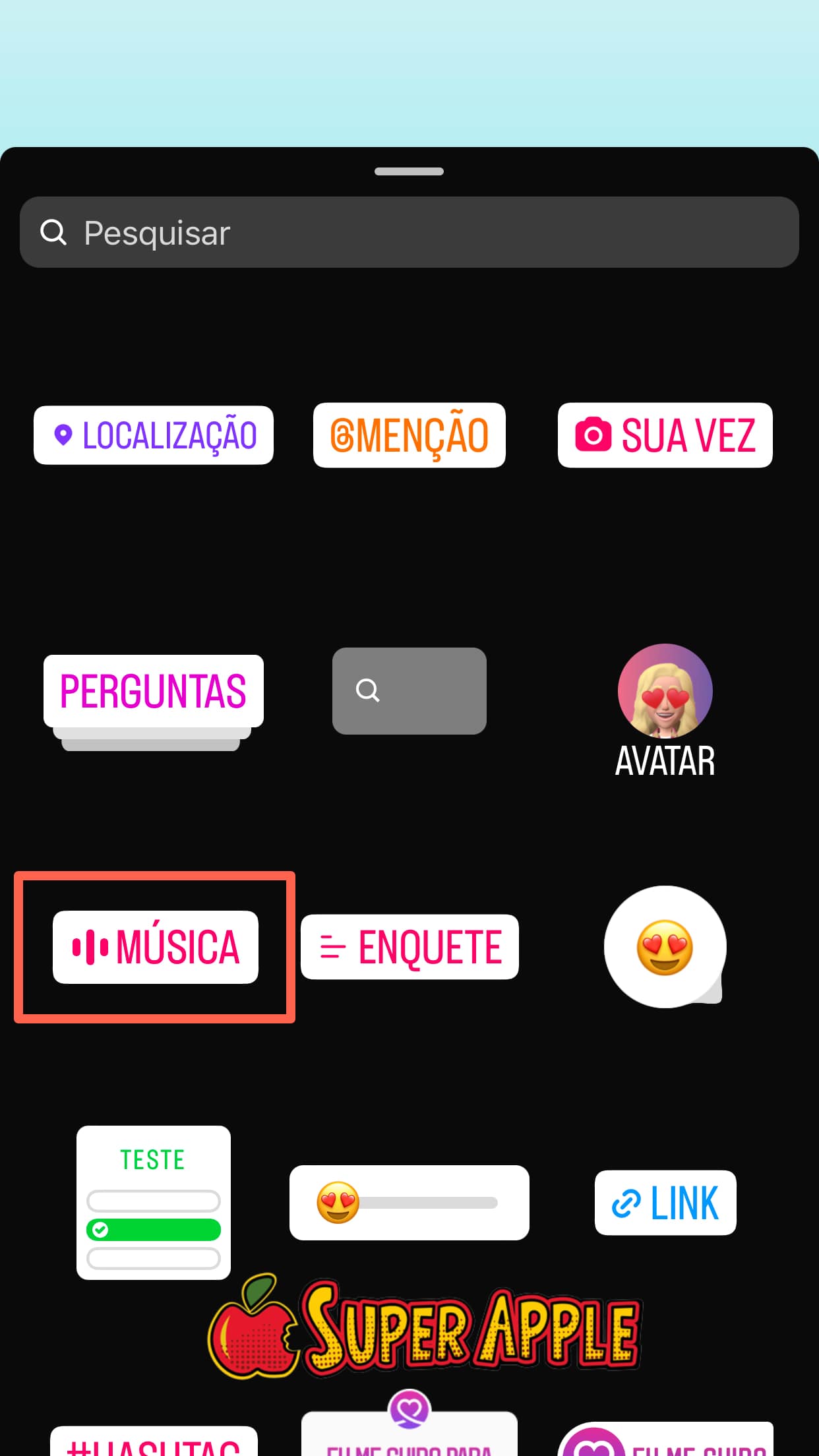 4. Em seguida toque no adesivo de música