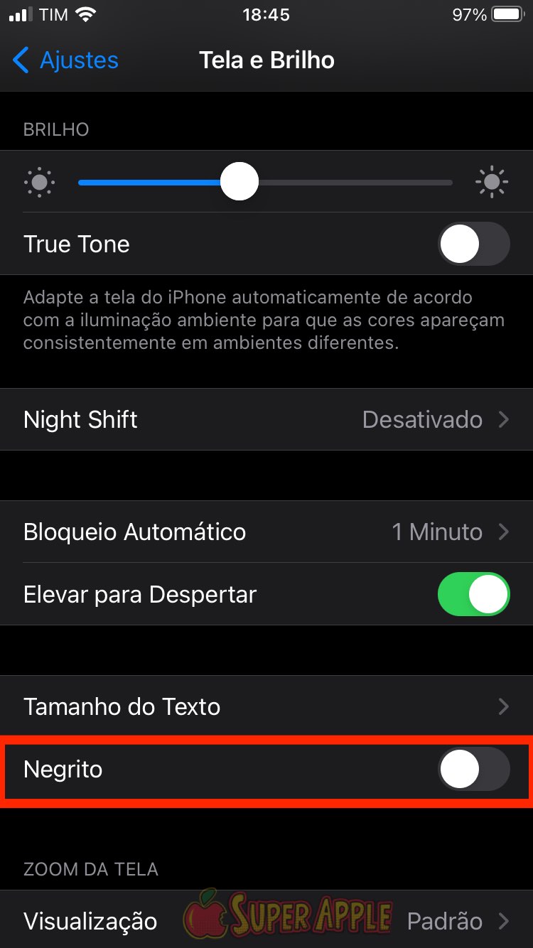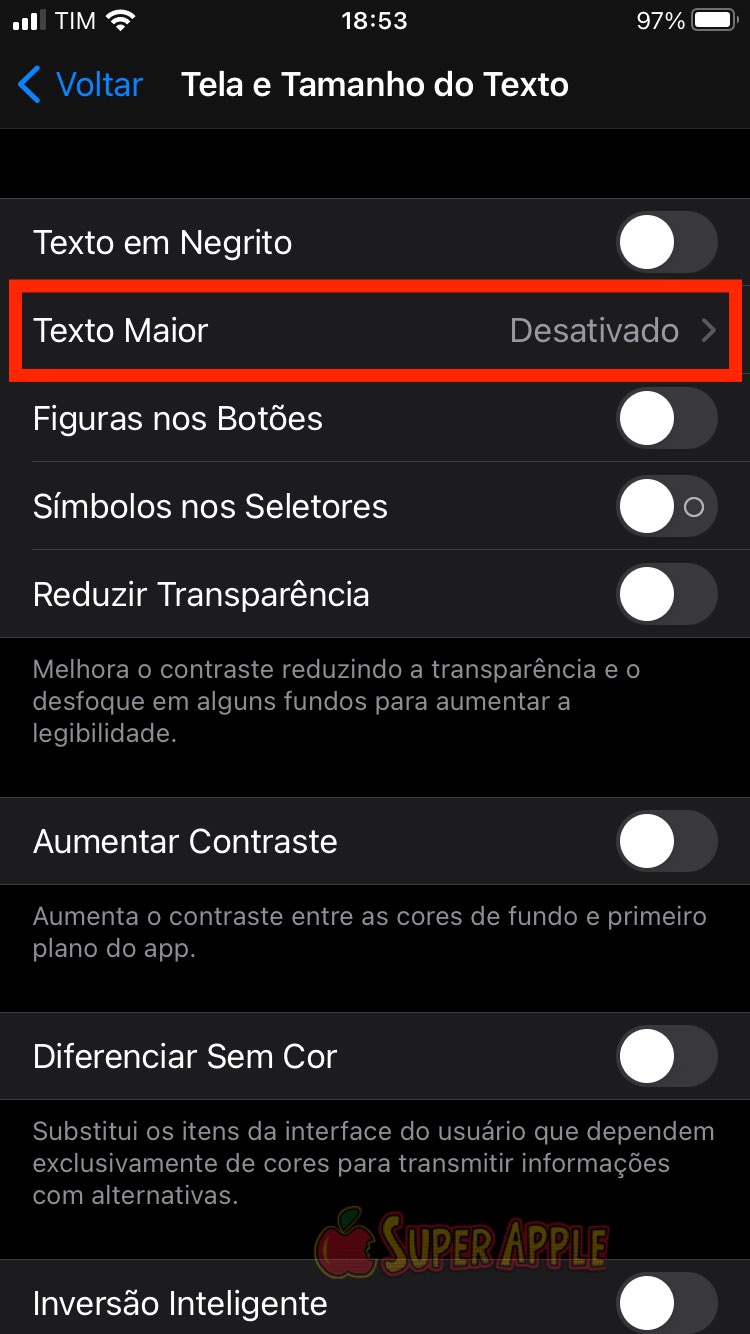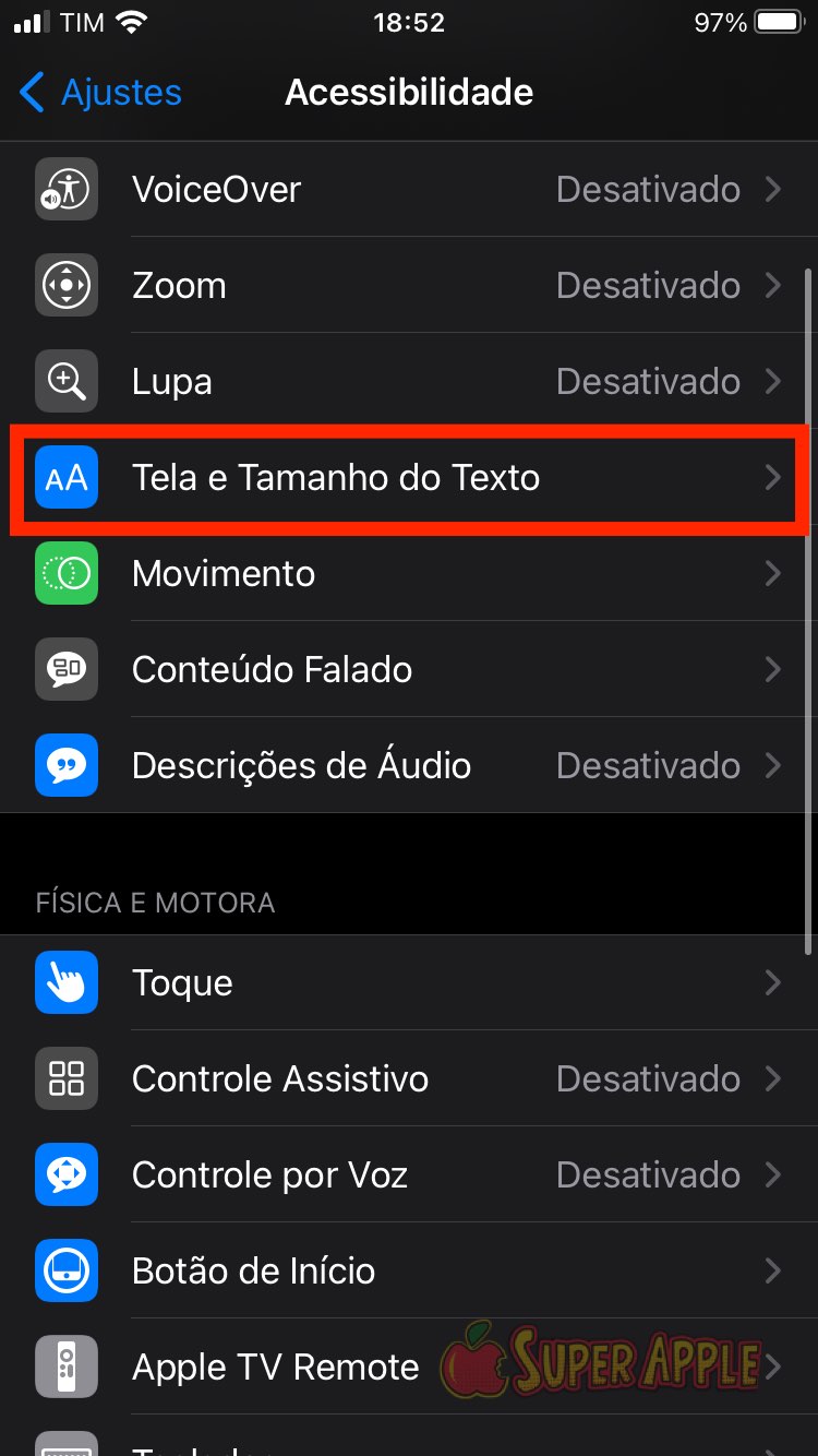 Como aumentar o tamanho da fonte no iPhone usando Tela e Brilho