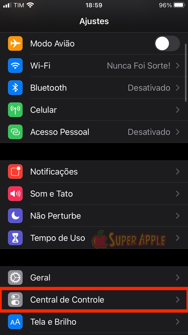 1. Abra as configurações do iPhone e toque em Central de controle.