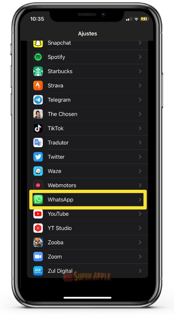 2. Em seguida, toque em “WhatsApp”