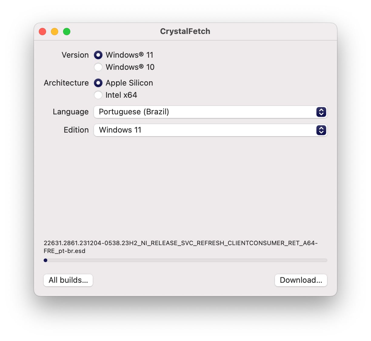O CrystalFetch é uma ferramenta simples que facilita o processo de download e criação de um ISO para o Windows 11 ou Windows 10. Além disso é preciso falar que é 100% compatível com as plataformas Apple Silicon ou Intel X86.