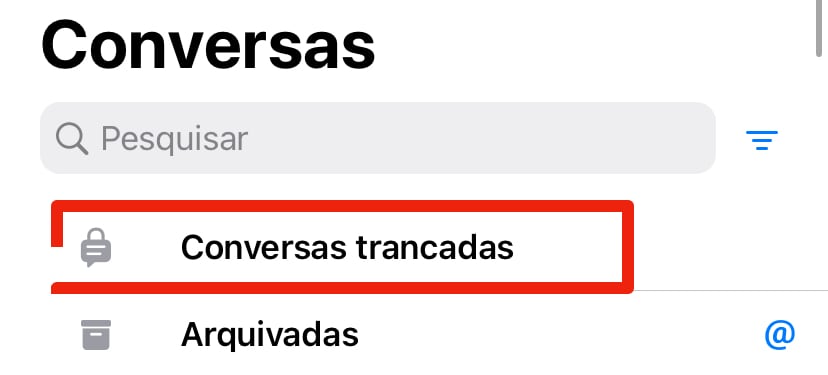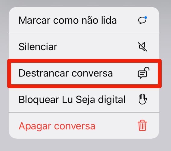 Lembre-se de que, após a ativação, você precisará procurar o nome da pessoa para acessar a conversa novamente. Ao tocar na conversa bloqueada, será necessário inserir sua digital, senha ou usar o Face ID para desbloqueá-la e continuar o chat.