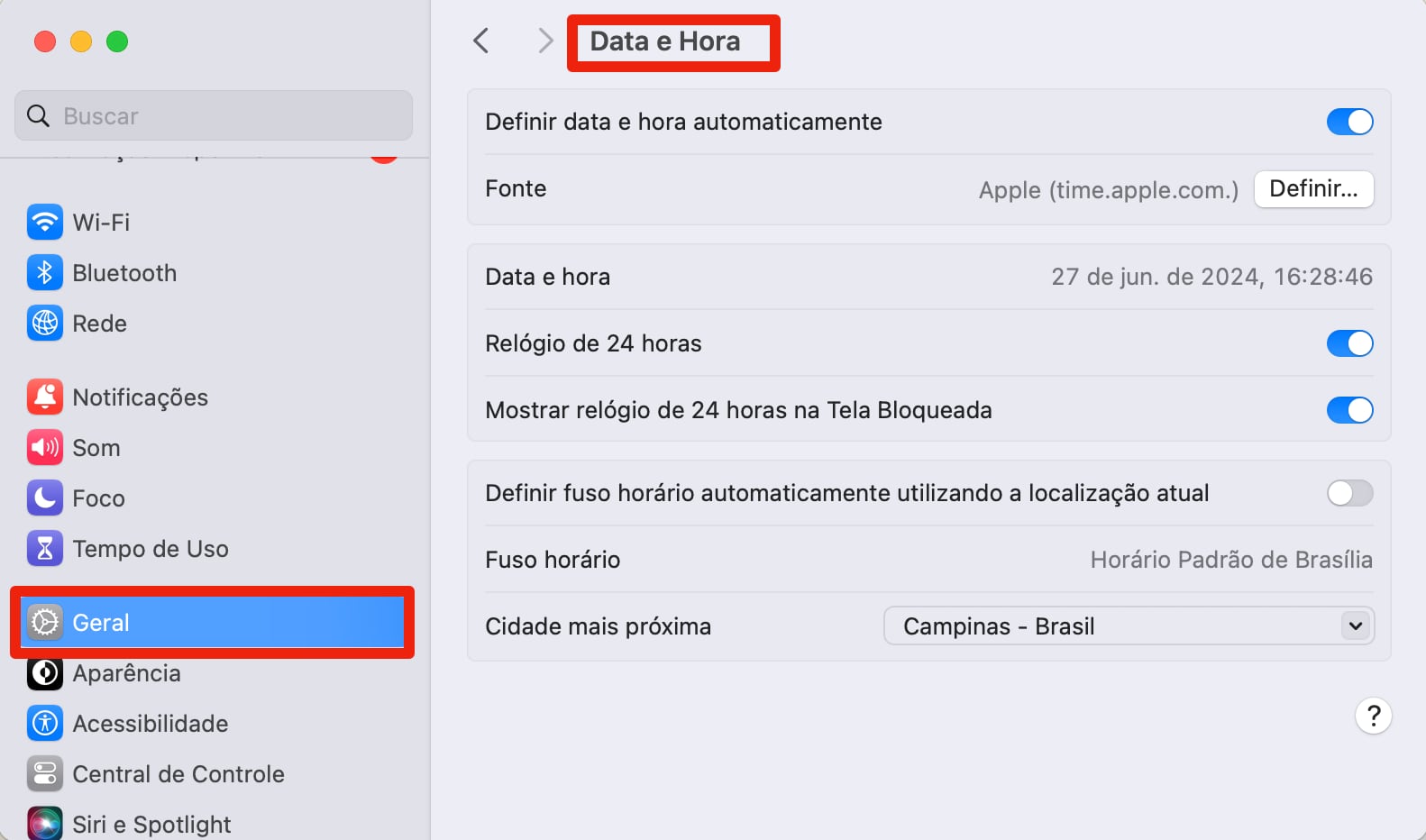 - Certifique-se de que a opção “ajustar data e hora automaticamente” está habilitada.