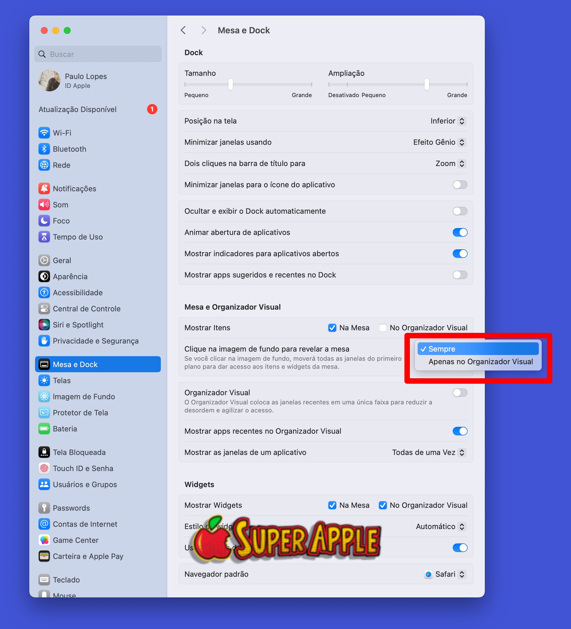 Como Desativar “Clique na imagem de fundo para Revelar a Mesa” no MacOS Sonoma