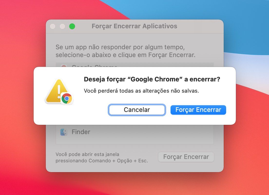 Se você acha que um aplicativo está fazendo com que seu Mac congele, tente forçar seu encerramento usando Command+Option+Esc para exibir a janela Forçar encerrar. Provavelmente será exibido o programa travado.