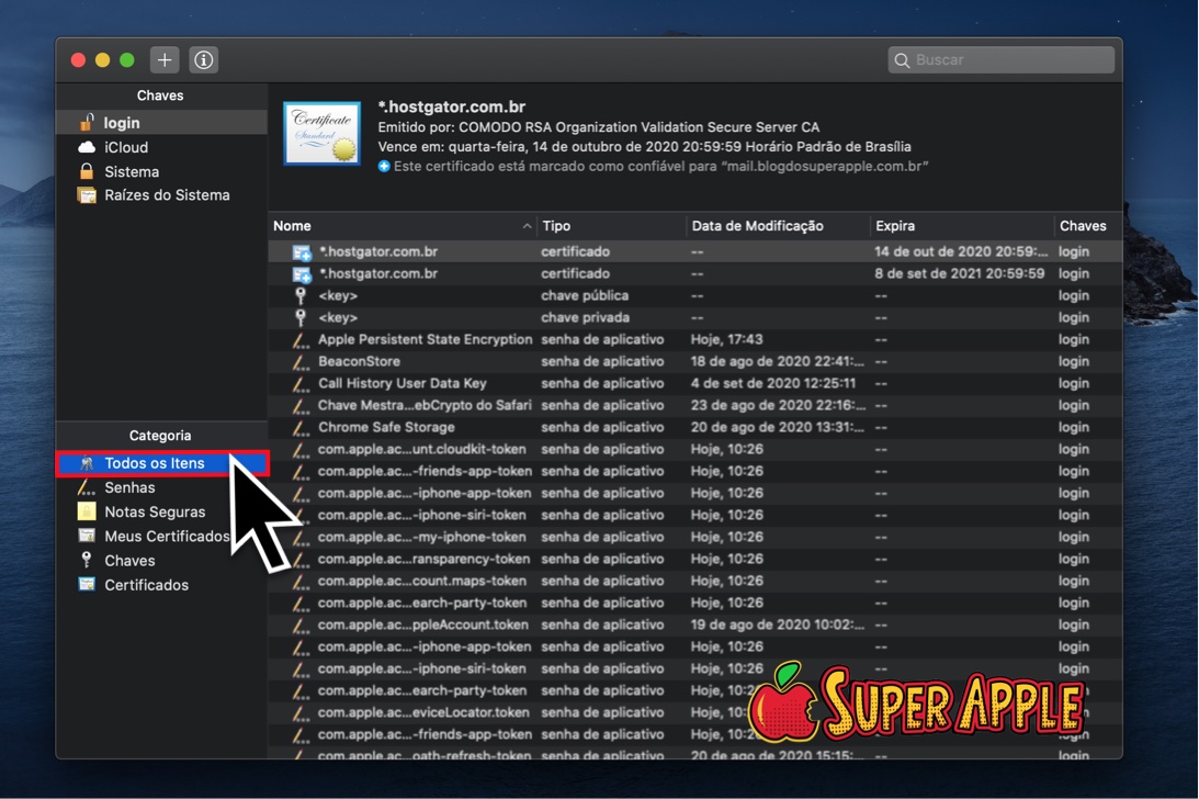 O “Acesso às Chaves” é um aplicativo padrão do macOS que mantém o registro de todas as suas senhas e outras informações de login com total segurança para você. A GRANDE vantagem dele é que com ele você NÃO precisa ficar lembrar ou ficar anotando suas senhas em um bloco de notas : ) Poucas pessoas sabem, mas o “Acesso às Chaves” funciona semelhantemente a um gerenciador de senhas de terceiros como LastPass ou 1Password, a diferença é que ele é totalmente integrado ao seus dispositivos Apple, incluindo Mac, iPhone e iPad.