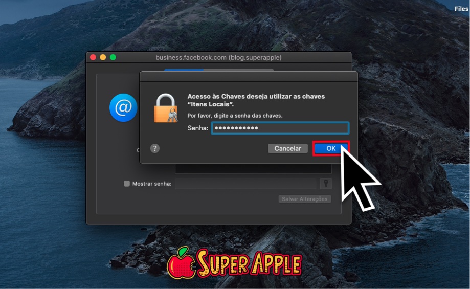 8. Agora, você será solicitado a inserir sua senha, que por padrão é a mesma senha de usuário do seu Mac. Para facilitar, esta é a mesma senha que você usa para fazer o login no seu computador. Clique em “OK” depois de digitar a senha.