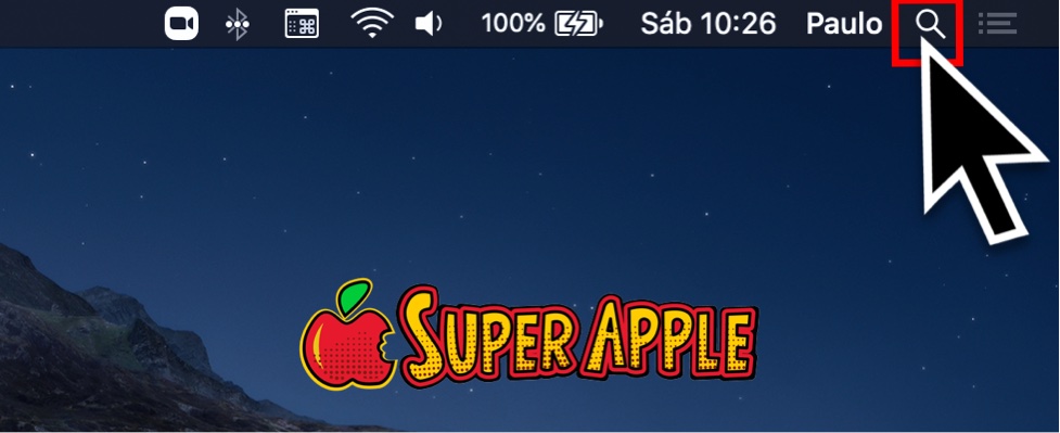 1. Primeiro, você precisa acessar a pesquisa Spotlight no seu Mac. Para isso, clique no ícone da pequena “lupa”, localizado no canto superior direito da sua área de trabalho. Como alternativa, você pode abrir o Spotlight pressionando Command + Barra de espaço no seu teclado.
