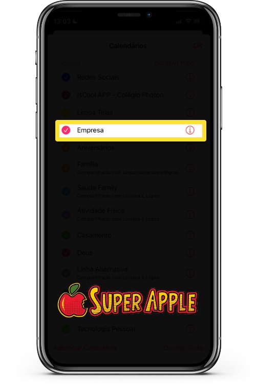 Siga os passos abaixo para fazer o compartilhamento do calendário utilizando seu iPhone ou iPad: