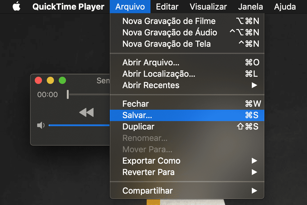 Em seguida, você verá uma prévia da gravação. Para salvar, clique em “Arquivo”, na barra superior, e em seguida em “Salvar”. Outra opção é usar o atalho do teclado e pressionar ao mesmo tempo as teclas command + S. Lembre-se de escolher o nome e o local do arquivo na tela seguinte.