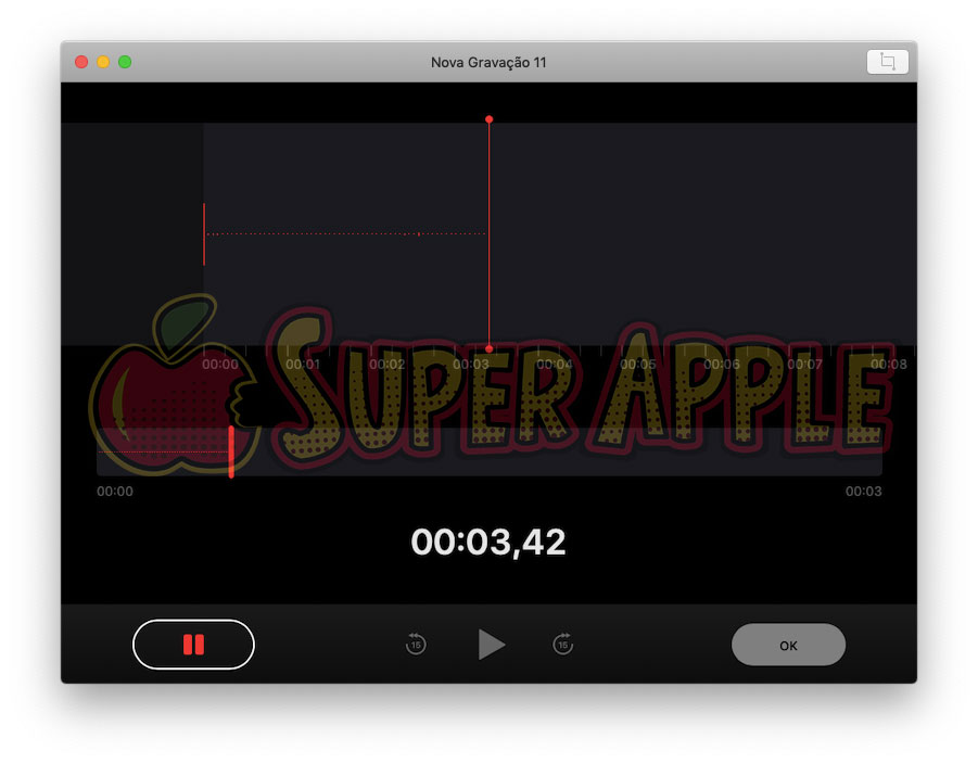 3. Na janela que se abrirá, serão exibidas as ondas de áudio capturadas pelo microfone do Mac ou microfone conectado na USB ou porta de áudio.