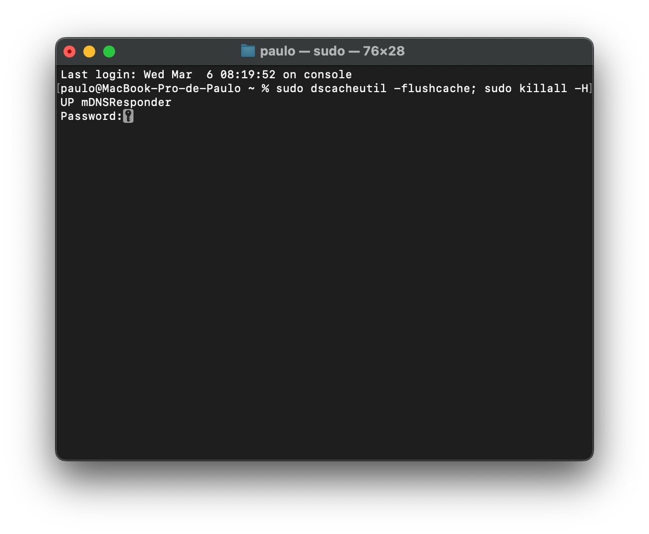 Se você notar, cada comando é prefixado com sudo; isso significa que será solicitado a inserir a senha de administrador do seu Mac antes de poder executar um comando. Certifique-se de ter sua senha à mão antes de tentar executar este comando no seu Mac.