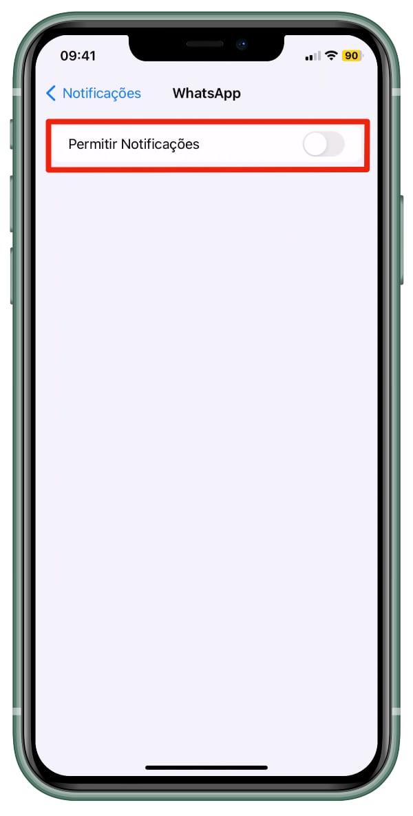 - Por fim desative a alternância ao lado de Permitir Notificações.