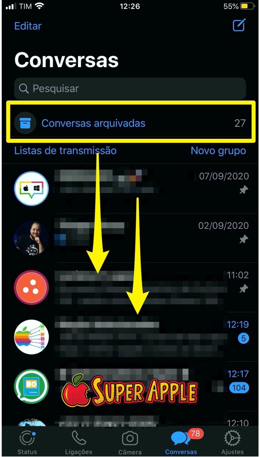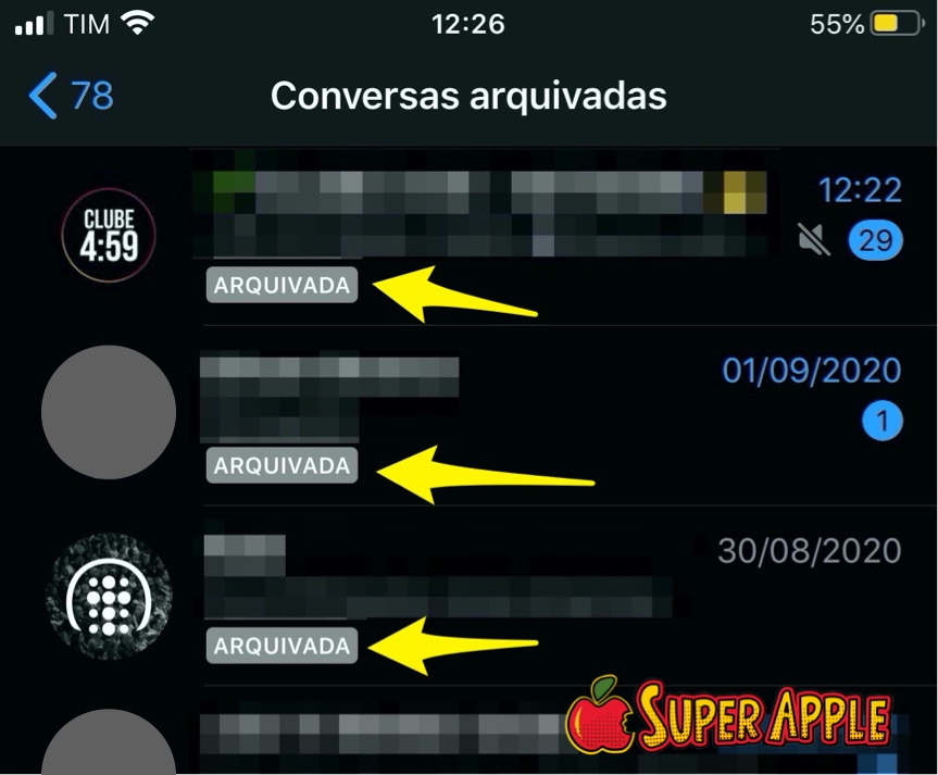 5. Como você pode ver, é muito fácil visualizar suas conversas arquivadas no Whatsapp do iPhone. Note que todas terão a tag “ARQUIVADA” como identificação logo abaixo do nome de usuário.
