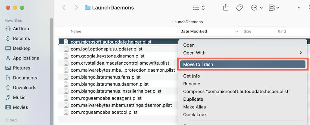 Se você não tiver mais aplicativos da Microsoft no seu Mac, pode optar por excluir o Microsoft AutoUpdate do seu computador. O processo envolve mover o applet para o Lixo e remover o agente de inicialização e as entradas do daemon de inicialização associadas ao programa.