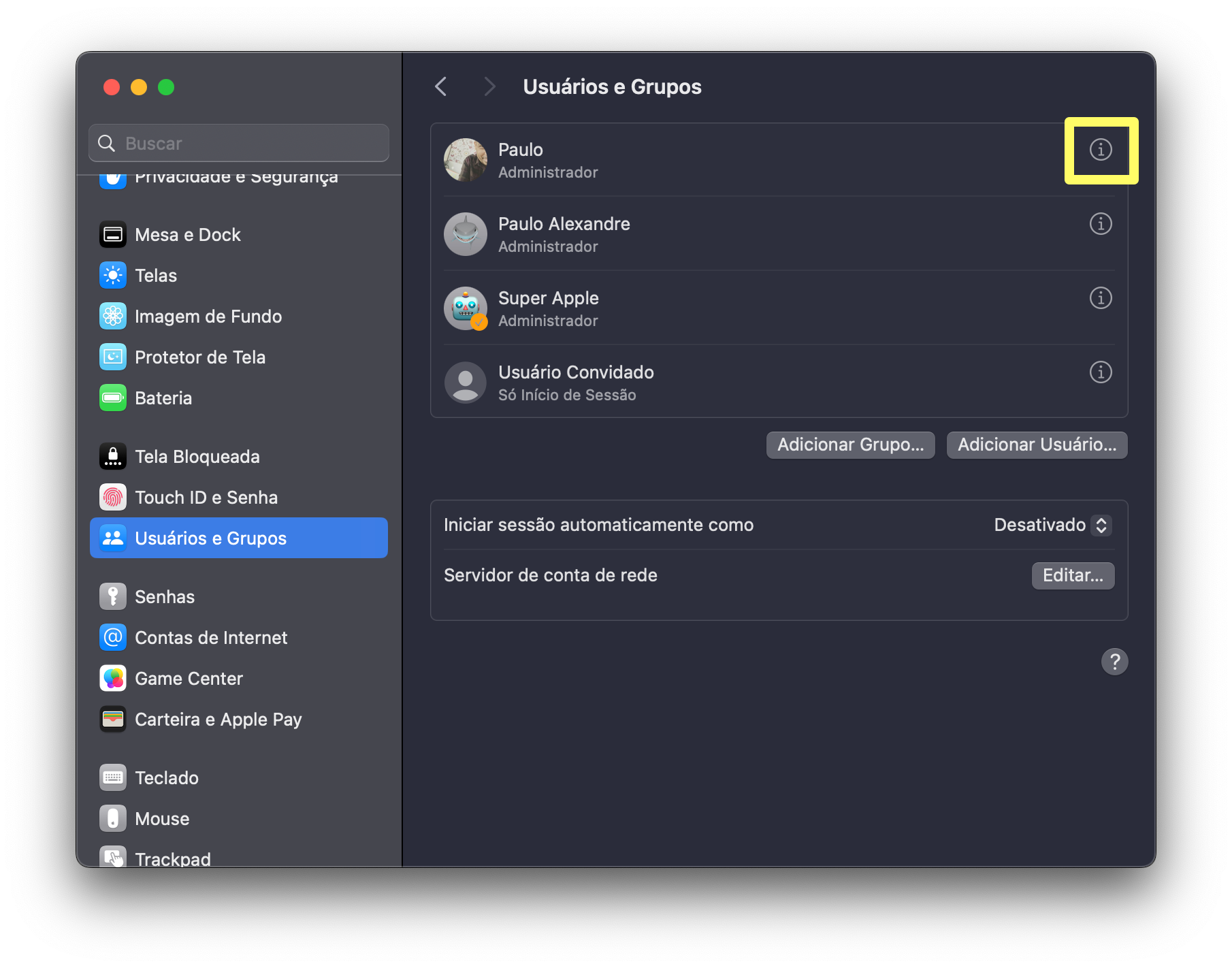 - Em seguida abra Ajustes do Sistema > Usuários e Grupos.