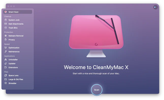 Utilizando o CleanMyMac X, você pode remover arquivos grandes e desnecessários, organizar suas pastas digitais e liberar espaço físico. Com uma abordagem de limpeza inteligente e um clique, além de uma varredura poderosa, é possível eliminar rapidamente documentos e aplicativos inúteis que podem deixar seu Mac mais lento. O CleanMyMac X permite realizar uma Varredura Inteligente, removendo lixo do sistema, malware e outros elementos que podem congestionar seu Mac, além de executar tarefas de manutenção para acelerar seu desempenho.