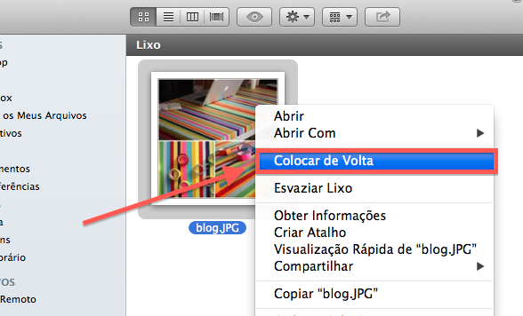 - Localize o arquivo, clique com o botão secundário do mouse sobre ele depois escolha Colocar de Volta