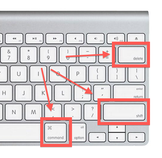 - Se você pressionar simultaneamente o command + shift + delete o Lixo será esvaziado. Caso você não consiga esvaziar o Lixo veja este artigo