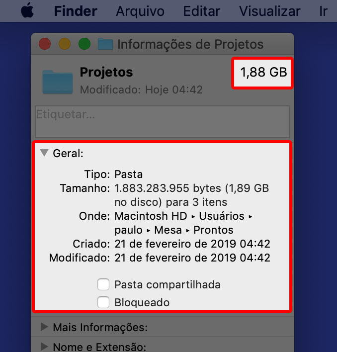 Como saber o tamanho de arquivos ou pastas no Mac