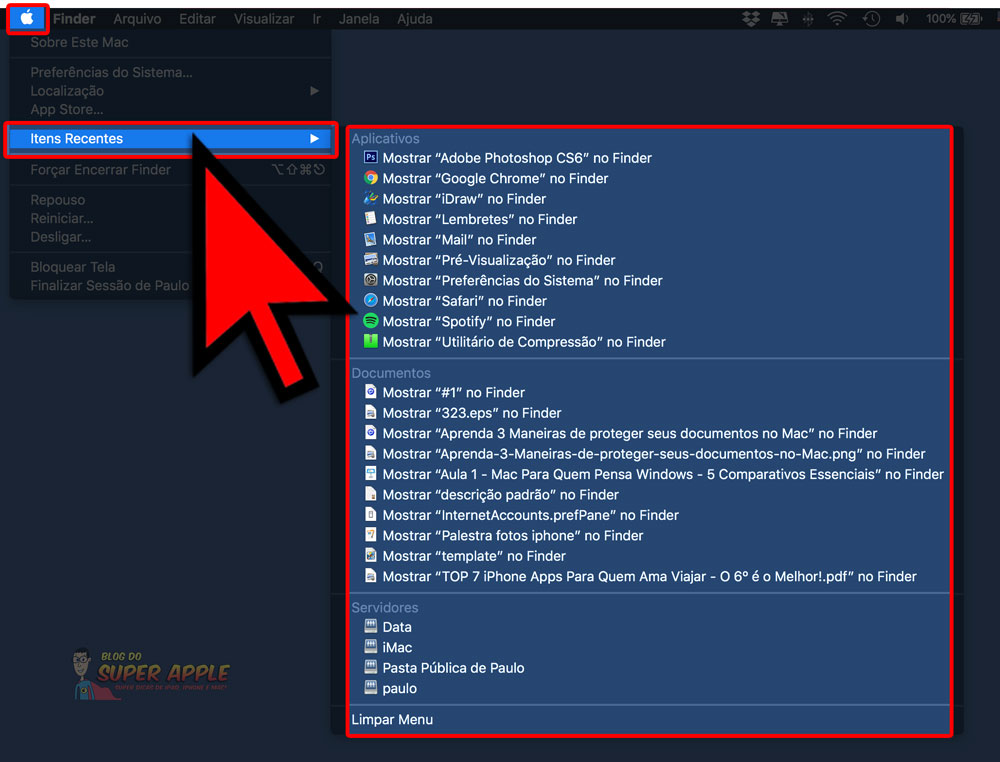 Além de servir para descobrir se alguém abriu algum arquivo no Mac, o recurso “Itens Recentes” também permite que você tenha acesso rápido a suas últimas atividades, o que ajuda muito na produtividade.