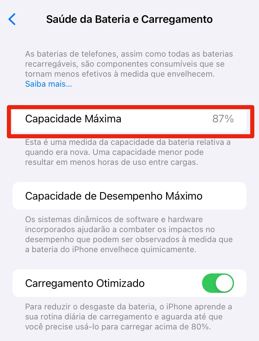 Além disso, funções como o “Carregamento Otimizado da Bateria” e o “Carregamento de Energia Limpa” podem ser ativadas para maximizar a vida útil da bateria.