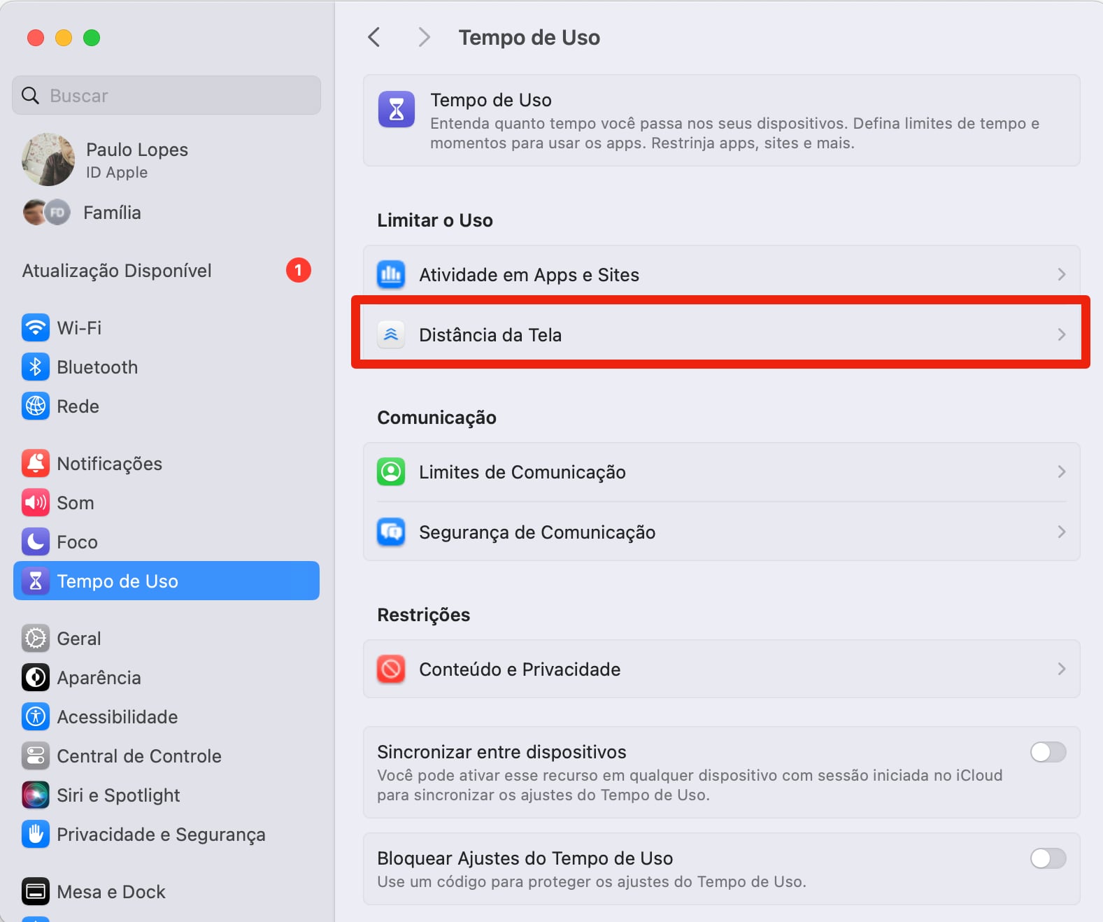 Embora a Distância de Tela esteja disponível no Mac, a funcionalidade pode não estar totalmente implementada. Nos testes, o alerta não foi ativado no Mac mesmo estando muito perto da tela, ao contrário do que acontece no iPhone e iPad.