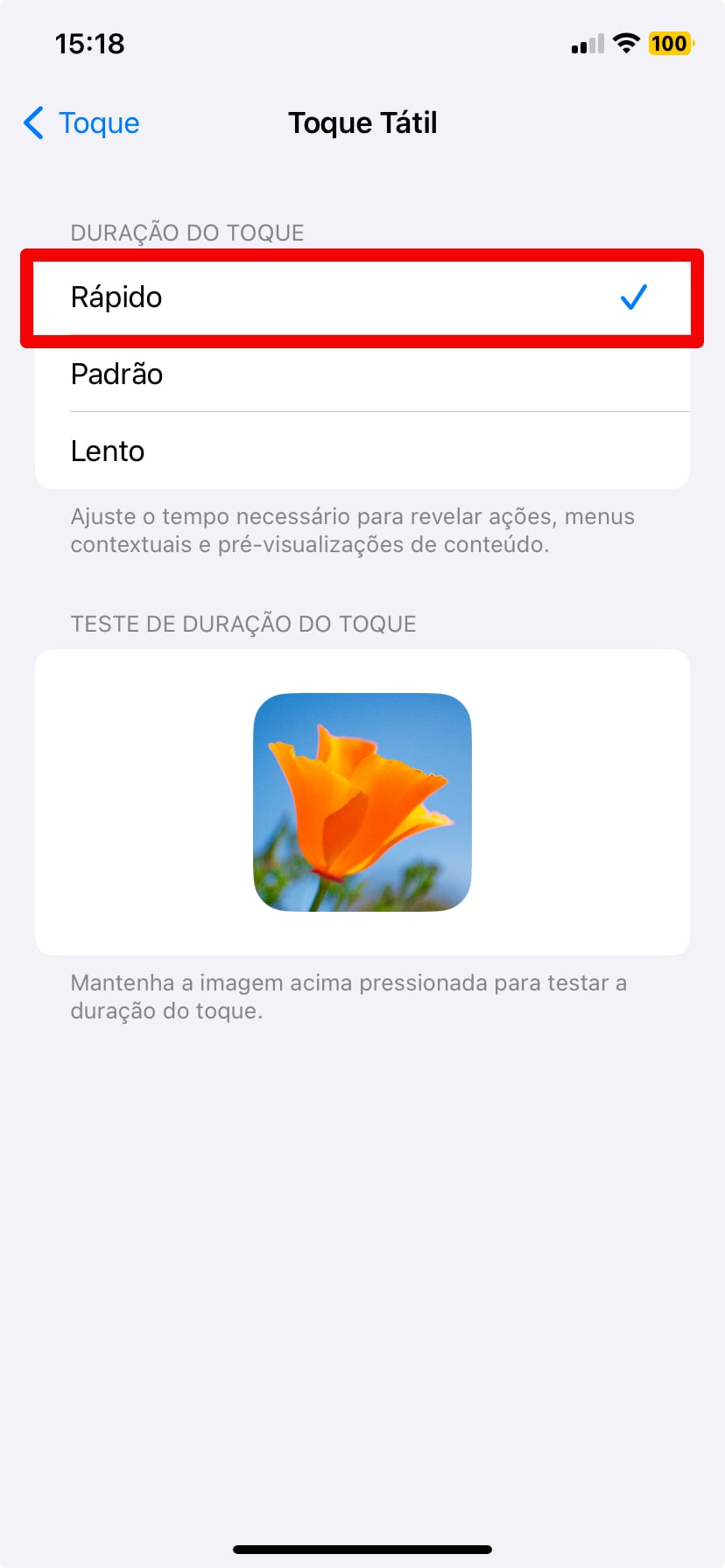 Como acelerar a duração do Toque Tátil no iPhone