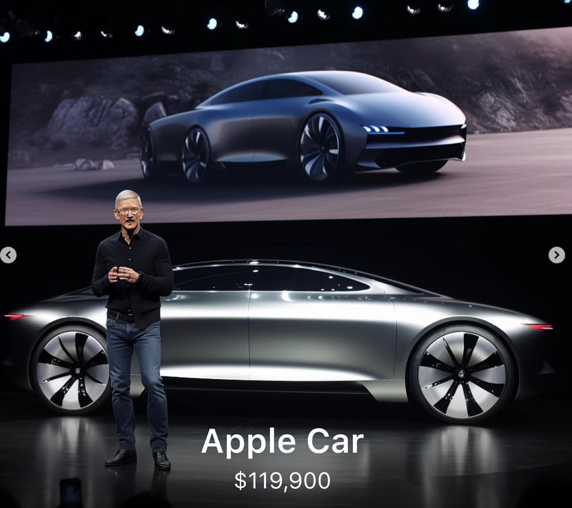 O CEO da Apple, Tim Cook, aparece apresentando todos os produtos. E não seria difícil imaginar que ele fique décadas e até séculos ou milênios à frente da empresa… Isso porque um dos produtos que a IA “previu” é uma máquina do tempo, pela bagatela de R$ 170 mil!