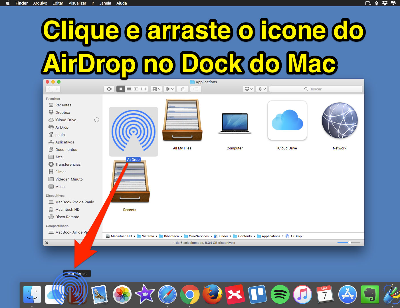 Como Inserir o Icone do AirDrop e iCloud no Dock do Mac