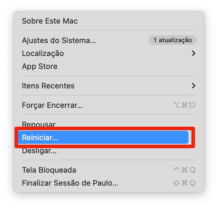 Você já fez isso? Se ainda não, faça agora! Ao reiniciar o Mac, o sistema operacional “reseta’ a memória virtual, ou seja esta pode ser a forma mais fácil de resolver problemas desse tipo.