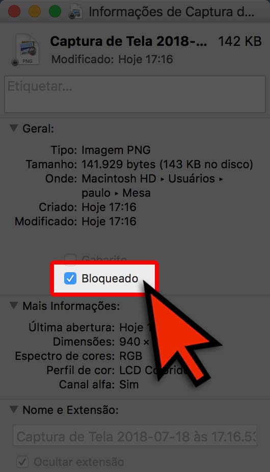 Se ainda assim os ítens não forem apagados, você poderá desbloquear os arquivos manualmente, se não forem muitos claro. Para isso Clique sobre o arquivo com a tecla control pressionada depois Desative a opção “Bloqueado”.