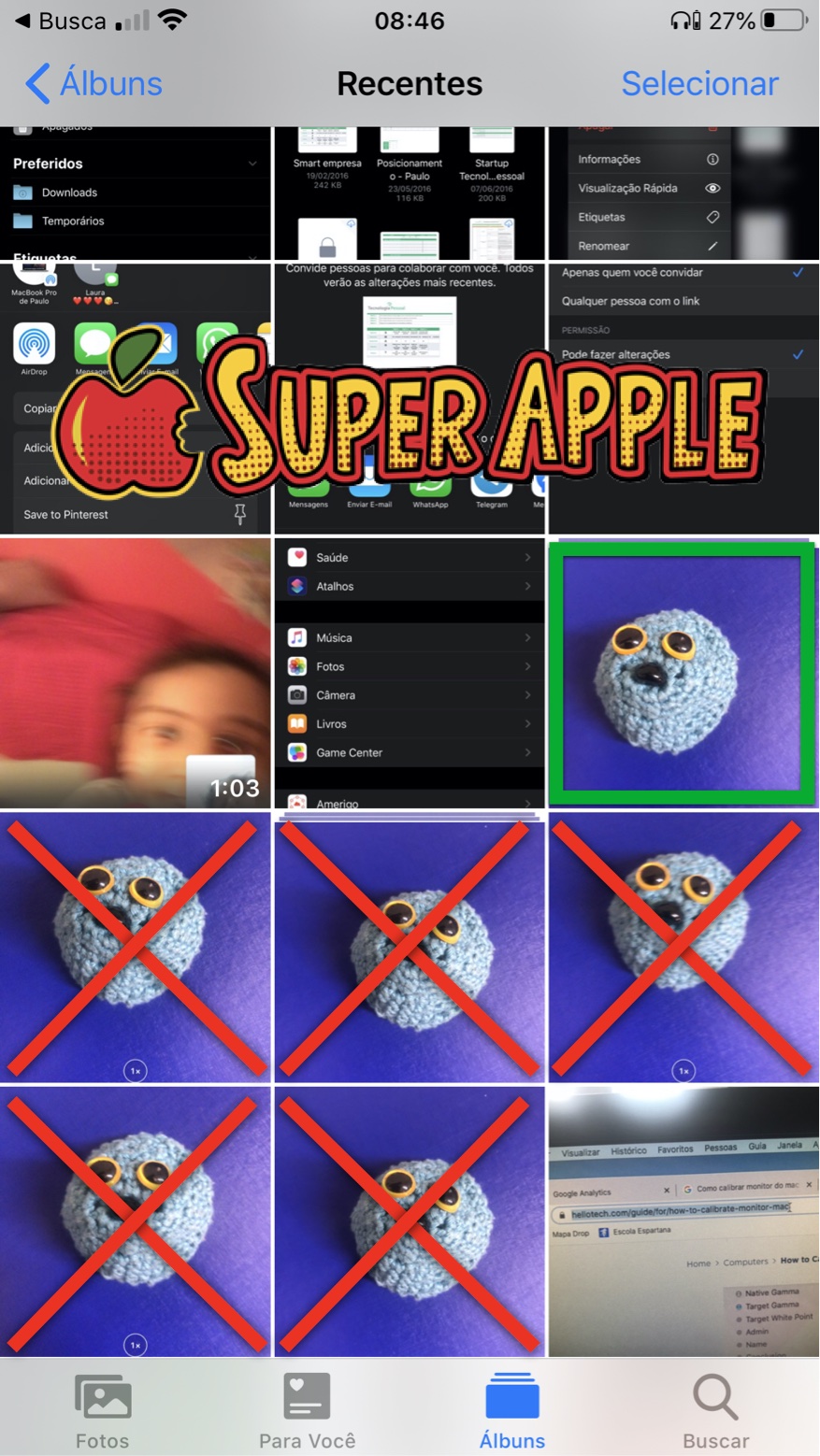Veja na imagem abaixo um exemplo: foram tiradas 6 fotos, destas escolhemos apenas 1. Depois apagamos as outras 5, desta forma vamos facilitando nosso trabalho na organização de fotos do iPhone no Mac.