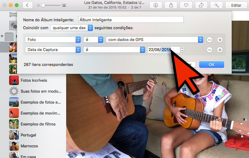 Por exemplo, você pode criar um Álbum Inteligente e configurá-lo para incluir todas tiradas por um determinado aparelho ou em um determinado período – como o ano de 2017.